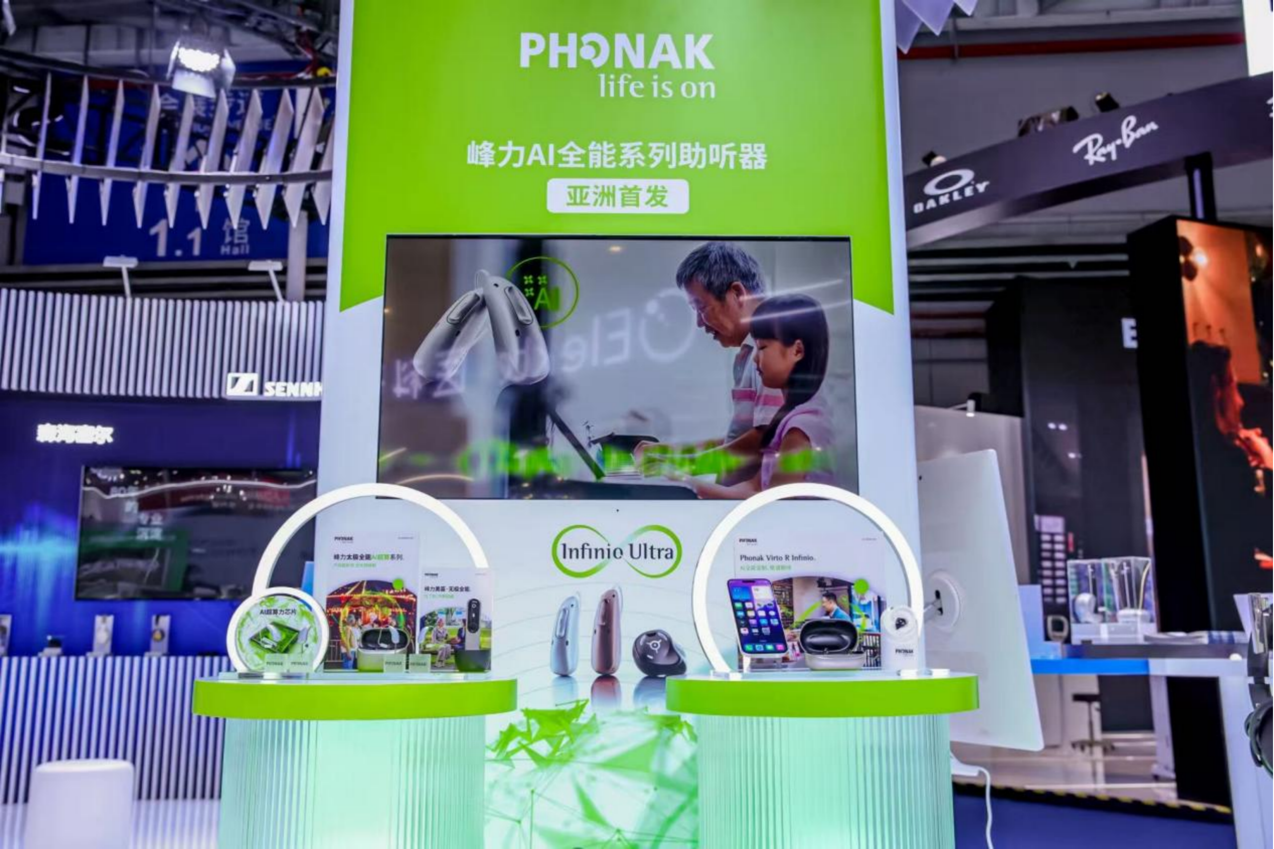 在听力健康领域,首次参展的索诺瓦“秀肌肉”,带来了亚洲首展的峰力太极AI超算力助听器。该产品搭载双芯片架构,以深度神经网络算法实时解析复杂声场,旨在实现从“听得见”到“听得清、听得懂”的跨越。