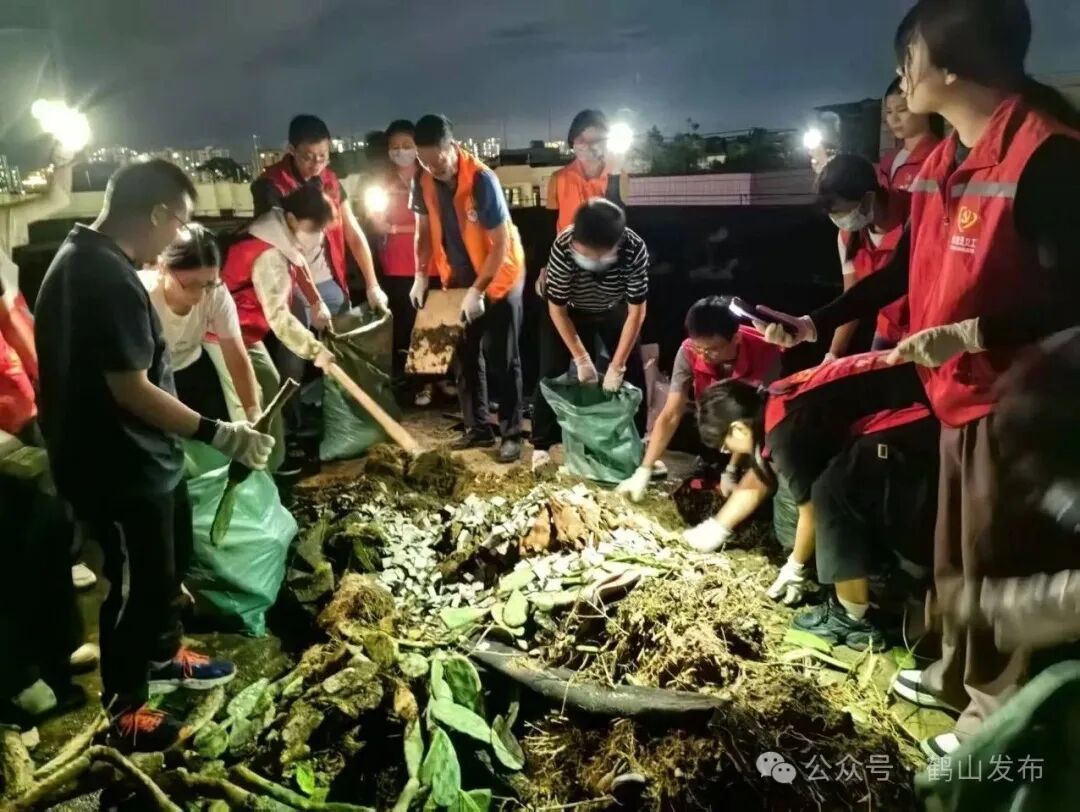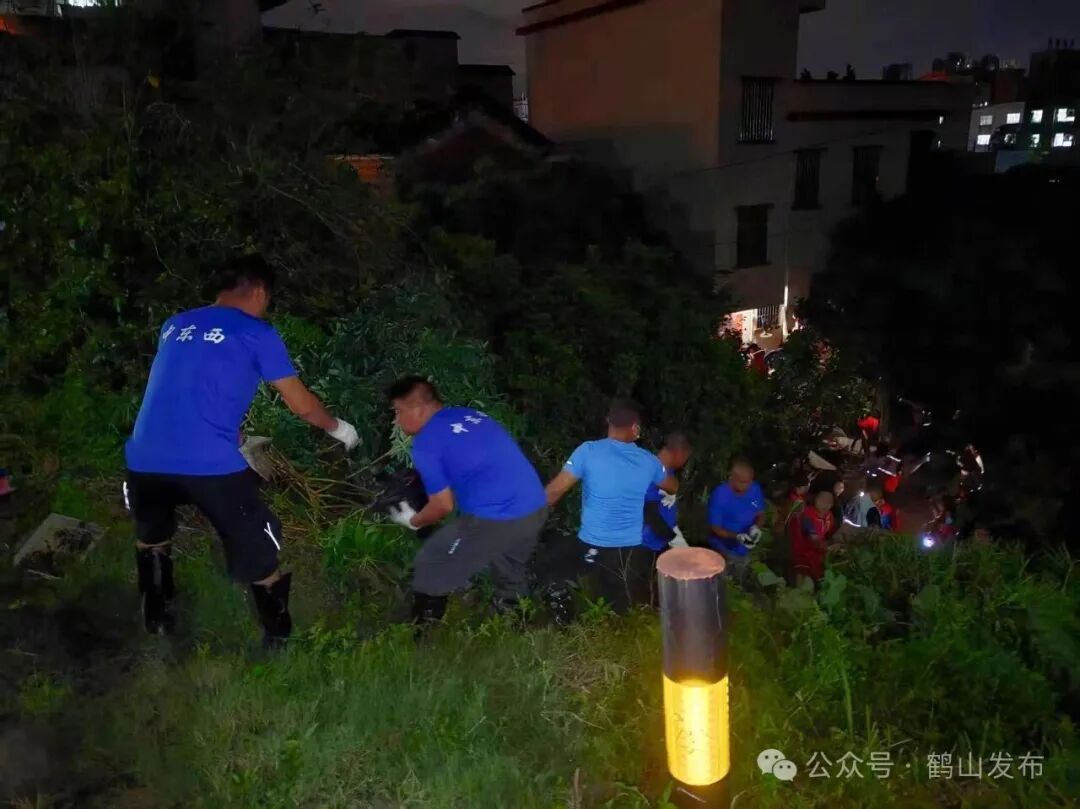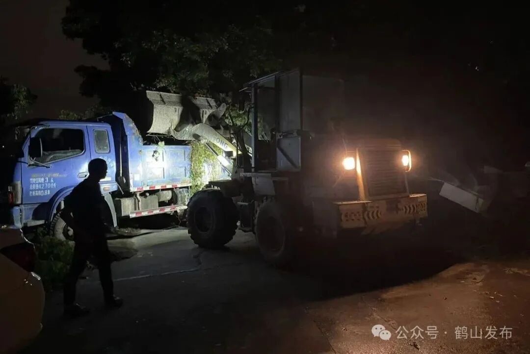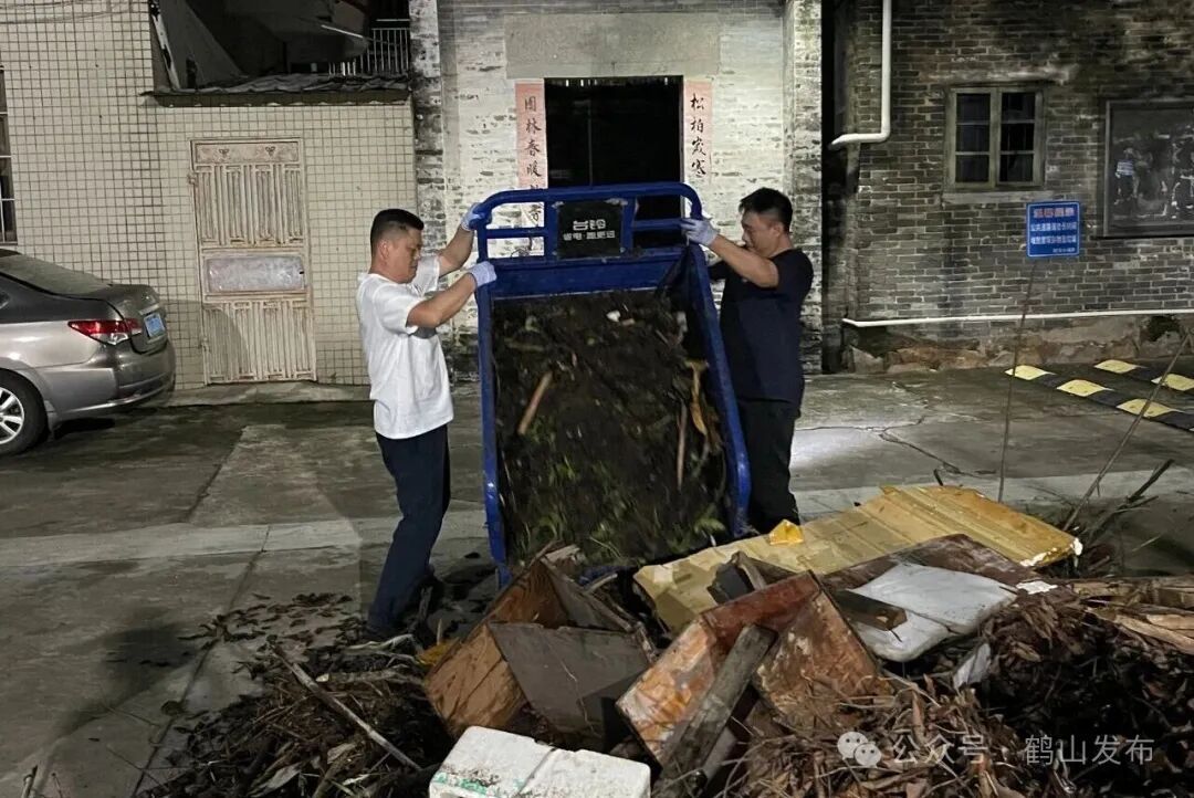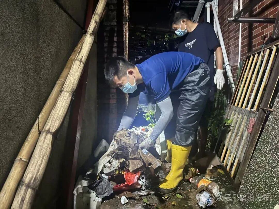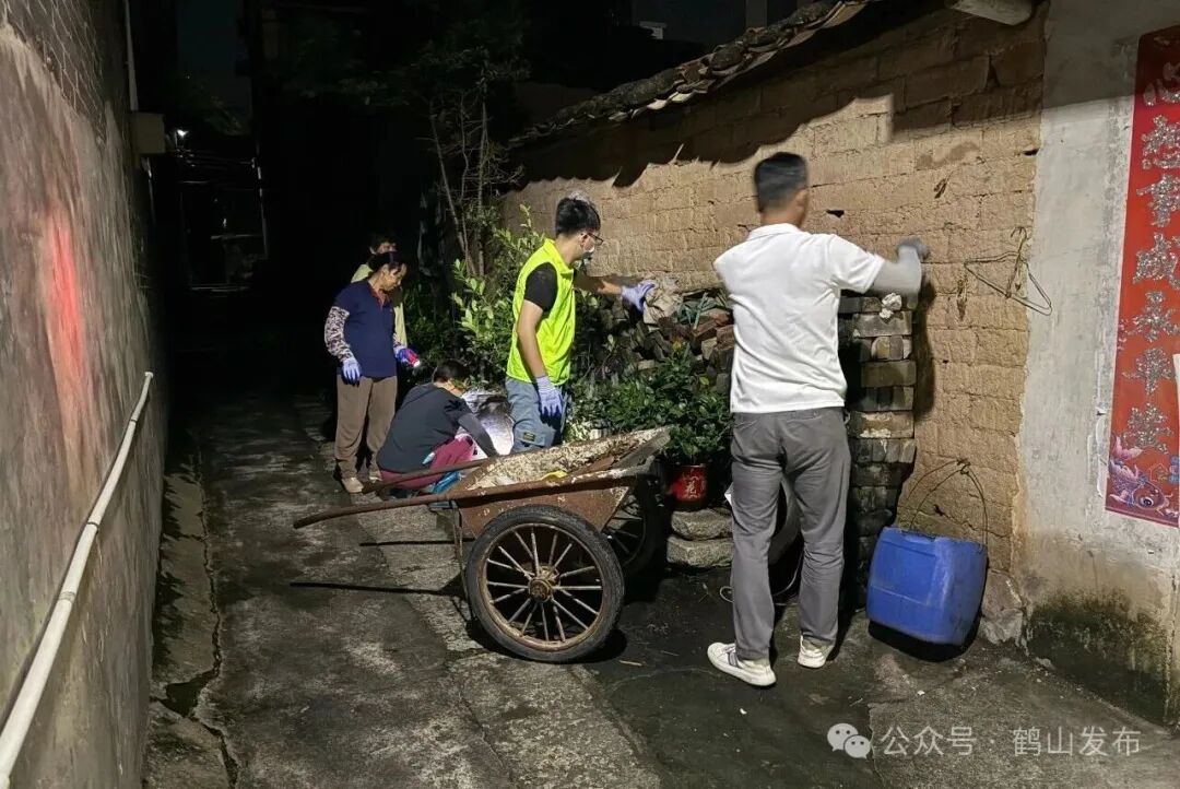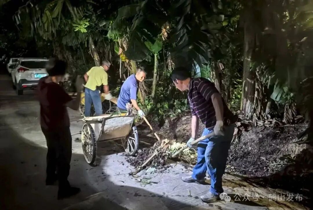 在沙坪街道楼冲村,300余名村民踊跃加入攻坚行动。行动中,一位七旬老人带着刚从银行下班回家的女儿一同加入清理队伍,合力搬运杂物、清扫巷道,成为当晚动人的一幕。多名热心乡亲自发组建专业清理队,带动村民开展环境整治,家家户户主动清理家中及房前屋后垃圾杂物,使用斗车、三轮车等工具将垃圾集中运送至指定空地。在鹤山市城管部门的配合下,村里聘请了大型铲车对垃圾杂物进行统一清运。
