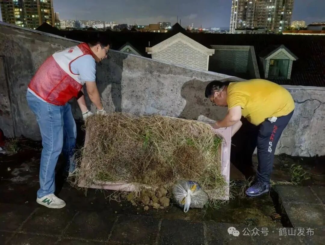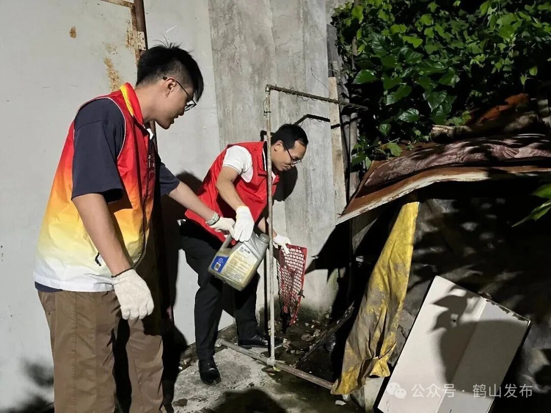 为抢抓台风“桦加沙”过后的防控关键期,切实保障人民群众健康,鹤山市坚决落实江门市疫情防控“拔钉子”攻坚方案人人配,迅速制定“一村一策”,9月25日晚连夜对涉疫情重点村(居)启动“拔钉子”攻坚行动,由市领导统筹包干,鹤山市镇村三级联动开展环境清理和灭蚊工作,广泛动员村(居)民积极参与,凝聚起群防群控强大合力。