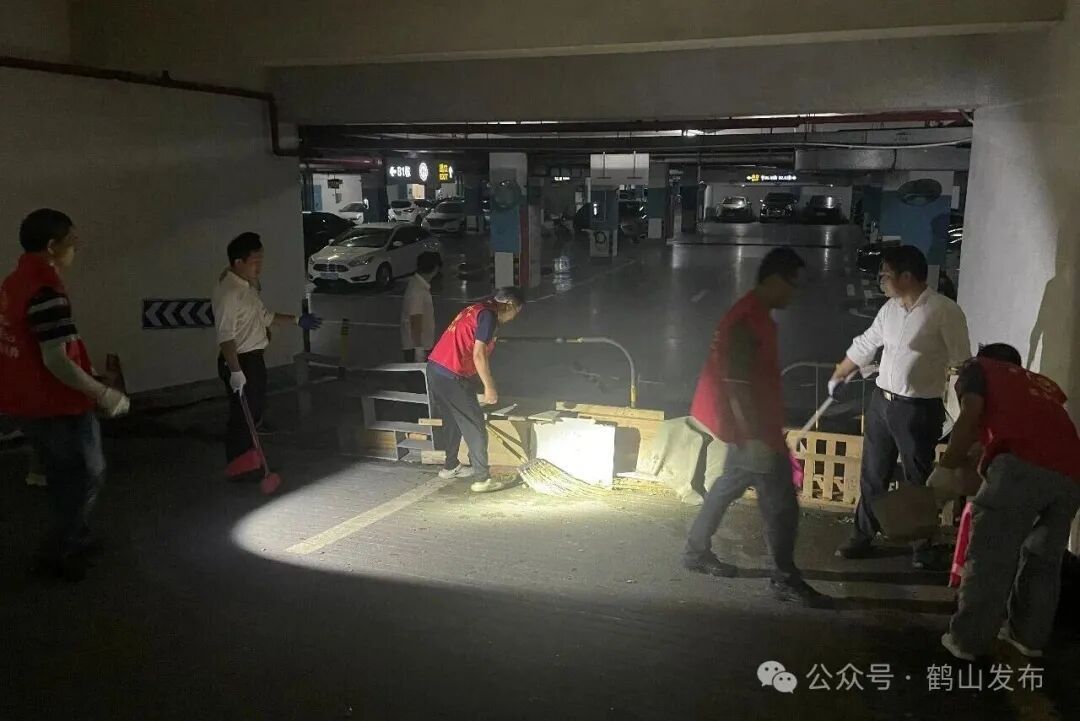 沙坪街道新业社区的志愿楼长们带头逐层清理楼道杂物,对容易积水的天台区域进行重点清理。